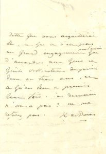 fait la conquête, elle meurt d’envie d’entendre les Six tilleuls, je n’ose pas les demander, vous m’avez si mal traitée tout l’hyver que je ne me crois plus aucun droit. Mais pensez pourtant que c’est une vieille dette que vous acquitterai là, et que ce n’est pas un grand engagement pour l’avenir que d’accorder aux gens ce qu’ils sollicitent depuis deux ou trois ans, et ce qu’on leur a promis cent fois »….Ancienne collection Édouard Herriot (avec chemise autographe).