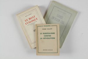 DAUMAL René.Le mont analogue. Paris, Gallimard, 1952. In-12, br. Édition originale, mention fictive.Joints :- Roger GILBERT-LECOMTE. Caves en plein ciel. Montpellier, Fata Morgana, 1977. Pt in-8, br.- Roger VAILLANT : Le surréalisme contre la...