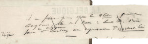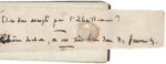 premier jet, parfois biffées après réutilisation. .Idées pour Napoléon-le-Petit : « pseudo-Bonaparte / pseudo-18 brumaire / terminer le résumé des indignités et des horreurs à venir / la farce du Serment »..Vers pour Dieu (L’Océan d’en haut, v. 1312-1314) : « « tous les pas de l’homme sont bords de mystères / la vie est l’avenue effrayante des sphynx / l’orgueil et la science, yeux de paon, yeux de lynx / aboutissent au même avortement » Note de la main de Juliette Drouet : « écrit la nuit sans lumière Guernesey Janvier 1856 »..Vers notés dans les marges d’un journal : « Vous êtes née étoile / C’est que vous avez eu des jupes d’une toile »…. « Es-tu donc aveuglé par l’éblouissement ? »….Notes pour Histoire d’un crime (II, 3 ; et note sur V. Schoelcher du « Cahier complémentaire) : « Il y avait quelques habitants à la barricade. – Est-ce l’empire que vous voulez, crie Schoelcher au peuple »… « pendant ce temps Bastide contait »… Etc.