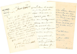 LITTÉRATURE F-M. 69 lettres ou pièces environ, la plupart L.A.S., XIXe siècle..Pier Angelo Fiorentino, Hippolyte Fortoul (à Souvestre), marquis de Foudras (3), Hector France (ms La folle du port), Émile Gaboriau (2, à Lemer et Souverain),...