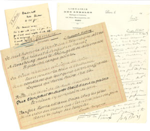 Caillavet, Félicien Champsaur (2), Jules Claretie (9), Roland Dorgelès, André Fontainas, Gustave Geffroy (7), Jules Lemaitre, Jules Mary (4), Catulle Mendès (à Claretie), Georges Ohnet (5), Jean Richepin, Saint-Georges Bouhélier (2), Georges Vicaire (9 à Ferroud, plus 2 de Gabriel Hanotaux), etc. Plus un petit dossier concernant le monument Jules Renard.