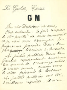 manuscrit et je vais vous l’envoyer. Je préfèrerais paraître dans la première livraison de novembre. Les parties publiées dans Le Gaulois représentent environ un quart de l’ouvrage entier. Les parties publiées ont été, d’ailleurs, refaites. Il n’en subsiste guère que des passages de dix ou vingt lignes de place en place. Cela suffirait pour qu’on les reconnut. Il vaut donc mieux prévenir. Vous pourrez supprimer tout ce qui choquerait vos lecteurs »…