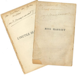 de Cyon cordial hommage Guy de Maupassant »..L’Inutile beauté(1890) : « au Docteur de Cyon son ami Guy de Maupassant »..On joint 2 envois a.s. d’Henri Massis à Julien Cain, et un fac-similé de Dumas fils.