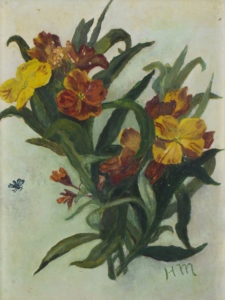 Henri MEILHAC (1831-1897). Gouache originale, signée en bas à droite « HM » ; 25 x 19 cm (encadré)...Bouquet de fleurs.