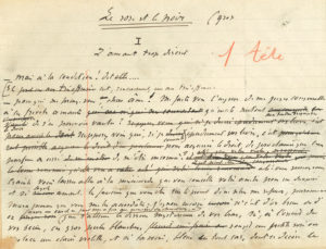 Catulle MENDÈS (1841-1909). Manuscrit autographe signé, Le rose et le noir ; 7 pages oblong in-4, contrecollées sur papier fort, relié en un volume oblong demi-percaline grise..Conte en trois parties, la seconde en vers : I L’amant trop...