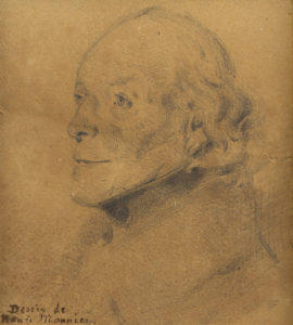 Henry MONNIER (1799-1877). Dessin original ; 9,7 x 9,3 cm (encadré ; papier un peu bruni, pli)..Tête de vieillard de profil..Exposition Dessins d’écrivains du XIXe siècle (Maison de Balzac, 1983, n° 137).
