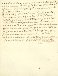 Antoine-Joseph Dom PERNETY (1716-1801) abbé, aumônier de l’expédition de Bougainville, bibliothécaire de Frédéric II, écrivain et illuministe. L.A.S. « L’abbé Pernetti » [au comte de Caraman] ; 2 pages et demie in-4..Très...