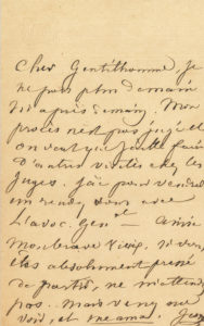 George SAND (1804-1876). L.A.S. « George », [24 avril 1838 ?], à Théodore de Seynes à l’Hôtel de Belgique ; 1 page petit in-8 à son chiffre, adresse..« Cher Gentilhomme, je ne pars plus demain ni après demain. Mon procès n’est pas...