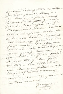 George SAND. L.A.S. « George », [Nohant 29 mai 1847], à son amie Rozanne Bourgoing ; 2 pages in-8, enveloppe..Annonce du mariage de sa fille Solange avec le sculpteur Clésinger..« Chère Rozane, je n’ai pas eu (et je n’ai pas encore) le...