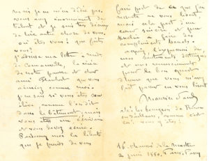 Maurice SAND (1823-1889). L.A.S., Passy 2 juin 1880, à Guy de Maupassant ; 3 pages in-8..Il vient de lire Boule de Suif, dans les Soirées de Médan : « c’est excessivement bien d’un bout à l’autre, c’est soutenu, c’est vrai, et...