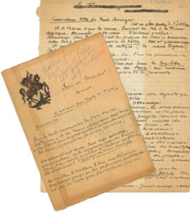 Marché, sonnet. Il est dédié « à mes amis Jean Merly et Henri Desperriers » :. « Sur la table poisseuse où les flots variés.Des “byrrhs” et des “amers” coulent depuis douze heures »….À la suite, une lettre dont manquela p. 1 : Tailhade demande à sa « cocotte chérie » son avis sur ce poème….Bagnères 18 juillet au soir : « Une mienne épître égarée sans doute par les maléfices des claquepatains porteurs de dépêches n’obtint pas plus de réponse que si j’eusse clamé aux catadupes du fleuve Nilus. Seriez-vous trépassé mon bon ami ou les chauldes et diliculissimes ventrées des jours précédents vous ont-elles induit en vomissements et conchiages breneux ? »….On joint un manuscrit autographe, Curriculum vitae de Paul Bourget (2 p. in-4), violente charge contre Paul Bourget : « C’est un “bon pauvre” de l’intelligence »…