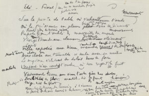 Paul VALÉRY (1871-1945). Poème autographe, Été. Final ; 1 page oblong in-8..Beau manuscrit de travail des trois strophes finales ajoutées au poème Été, paru en 1896 dans la revue Le Centaure, et recueilli en 1920 dans Album de vers anciens....