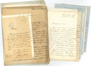 lettres). .Importante correspondance reçue par Vieillard, notamment de ses collaborateurs écrivains et musiciens..Pierre-Ange Vieillard de Boismartin (Rouen 1778-Paris 1862), journaliste, bibliothécaire, critique littéraire, auteur dramatique et librettiste. Critique littéraire au Moniteur universel, un des principaux rédacteurs de l’Encyclopédie des gens du monde, conservateur de la bibliothèque de l’Arsenal puis de celle du Sénat, il fut l’auteur de nombreuses pièces de théâtre, souvent en collaboration, et un parolier et librettiste recherché et apprécié des musiciens..Le danseur Albert (et sa femme Louise, 48), Dr Jean-Louis Alibert, Félix Blangini, Nicolas-Charles Bochsa (3), Casimir Bonjour, Clément Brière, Charles Brifaut (6), B. Brulebœuf-Letournan, L. Bucaille (12), Gustave Caillemer, Alphonse de Calonne, Vincent Campenon, Louis de Casamayor, Alexandre de Chambure, Stanislas Champein, Alissan de Chazet (13), Hippolyte Chelard (4), Hippolyte Colet, Alexandre Corby (8), Auguste Coster (4), L.F. Cottin, Karl Daclin, Auguste Dauverné, abbé Gaspard Deguerry, Zélie Delaire, Charles Delioux, Martial Delpit, Charles Desains, Desdevises du Dézert (9), A. Doin (2), Hugues Dubourg, Georges Ducis, Joseph d’Estourmel (23), Louis Festeau, Gaston de Flotte, A. François (9), S.E. Géraud, Nicolas Gersin (5), J.B. Gindre de Mancy, Alphonse Grün (directeur du Moniteur universel, 38, plus minutes de réponses de Vieillard), G. d’Hermilly, comte de Kergorlay, Léon Kreutzer (4), baron de Ladoucette (6), Ch de Lagarde (7), Honoré de Lourdoueix (7), Alphonse Martainville, J.B. de Martignac (concernant la construction du nouvel opéra), J. Martin d’Angers, Malvina Mazois, Auguste Michelet, comtesse de Montalivet, Édouard Mounier, R. de Nugent, comtesse O’Mahony, Giovanni Pacini (10), Émilien Pacini (3), Joseph et Rose Pain (2 et 7), Charles et Ernestine Panckoucke (4), baron Papion du Château (4), Charles Plantade (4), Charles Poisot (3), Antoine Ponchard (3), Gaspard de Pons (17), Adrienne Pottier (7), N. de Puisard (4), André-Antoine Ravrio, Auguste Robert (4), Jacques Bins de Saint-Victor (12), Thomas Sauvage, François Sauvo (11), Jean-Henri Schnitzler (6), Louis Sejan, Jules de Somer (7), J.B.A. Soulié, Julien Travers (14), Étienne Tréfeu, Auguste Troplong (3), Cécile Valois (3), etc..Brouillons et minutes de lettres de Vieillard à des directeurs de théâtres, à Bochsa, Boieldieu, Chelard, Corby, Cuvillier-Fleury, Désaugiers, Duponchel, Mennechet, Persuis, Picard, Sauvo, Thiers, Turgand, etc.