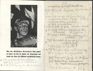 Marie BONAPARTE (1882-1962) descendante de Lucien Bonaparte ; princesse de Grèce, traductrice de Freud et introductrice de la psychanalyse en France. Notes autographes dans Adolf Hitler, Mein Kampf (176-177e édition, München 1936) ; in-8,...