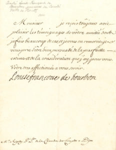 Louise-Françoise de BOURBON (1673-1743) dite « Mademoiselle de Nantes », fille légitimée de Louis XIV et de la marquise de Montespan. L.S., [début février 1742], à M. Rigoley Président de la Chambre des Comptes de Dijon ; demi-page in-4....
