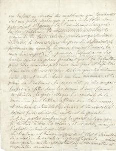 nivôse VI (29 décembre 1797), à Caroline d’Hyenville ; 4 pages in-4 (petit accident sans manque dans le haut de la lettre)..Intéressante lettre à une ancienne élève, à propos de la future Reine Hortense..Elle lui envoie, malgré la cherté des ports de lettres, des « petites niaiseries de vos compagnes […] Hortense est à Paris. Le général [Napoléon Bonaparte] qui est arrivé avant la maman [Joséphine] a été si content de sa modestie, de son maintien, de ses talens, qu’il a désiré m’en faire ses remercimens et m’a invitée à dîner, […] il m’a dit que si Me Bonaparte partageoit son vœu Hortense reviendroit chez moi ». Elle espère dont pouvoir encore garder « cette aimable enfant qui ne m’a donné que de la satisfaction, et me fait infiniment d’honneurs »… Elle a dû renvoyer Mme Lagoutraye « qui broulloit toute ma maison et y fesoit mille cabales, [...] elle en est sortie comme Médée, ou pour faire une comparaison plus analogue à son caractère comme le Tartuffe de Molière lorsqu’il enfonce son chapeau et dit qu’il perdra les gens honnêtes qui l’ont recueilli »… Jurant que Mme Campan allait perdre son établissement, elle est allée voir tous les parents en la décrivant « comme une démocrate terroriste […] parce que j’ai dit que le Général Bonaparte est à comparer avec avantage aux plus grands Capitaines de l’antiquité », vérité qui restera pourtant dans l’Histoire. Elle l’a aussi accusé de négliger les devoirs de la religion pour ses élèves, et d’être « méchante comme le diable », etc… : « Laissons tant d’horreurs, elles affligent l’humanité et on est particulièrement affecté de les voir dans les cours qui devroient avoir une vraie piété »… Elle raconte ensuite les terribles malheurs d’une élève, « ma petite Sophie que j’aime à la folie », dont le père vient d’épouser « la comédienne Lange de la rue Feideau, la mère irritée a trouvé le moyen de la faire enlever », ce qui a occasionné une violente rixe entre les domestiques du père et le gens de la mère : « la pauvre enfant a eu ses hardes mises en pièces pendant que l’on batailloit pour elle, mais son petit cœur bien pur […] aura été encore plus déchiré que ses vêtemens ». Sa mère la retient dans un lieu inconnu dans l’attente du procès, ne voulant pas la laisser dans les mains d’une femme de théâtre, etc… Elle enverra bientôt le petit cadeau pour sa chère Caroline : « il est prêt, mais je l’exhorte à bien travailler »….On joint une P.A.S. à en-tête de la Maison d’éducation de la Citoyenne Campan, Compte rendu aux Parens des Pensionnaires », bulletin de Caroline d’Hyenville, 1er floréal IV (20 avril 1796) : bulletin très élogieux, avec reçu de la somme de 500 fr en assignats (1 page in-4 en partie imprimée).