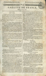 CENT-JOURS. Périodique, Gazette de France, avril-juin 1815. Paris, imp. Pillet (in‑fol., dérelié)..Réunion de 87 numéros de cette feuille quotidienne, du n° 94 (4 avril) au n° 181 (30 juin 1815).