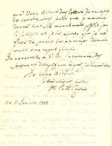 Ercole CONSALVI (1757-1824) cardinal, secrétaire d’État de Pie VII. L.A.S., 5 janvier 1823, à une Altesse ; 1 page et demie in-4, en français..Il s’est renseigné au sujet de l’arrestation du domestique de Son Altesse ; l’ordre ne...