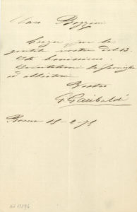 Giuseppe GARIBALDI (1807-1882). L.S., Rome 15 février 1875, à Bozzini ; ¾ page in-8 ; en italien..Il le remercie pour sa lettre. Qu’il soit béni ! Salutations à la famille et embrassades…