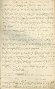 militaire « Auguste » à son épouse Berthe à Vidalon dans l’Ardèche, du 15 août 1914 au 18 janvier 1915. Il raconte les premiers combats, les premières victoires françaises, puis la guerre. Il fait preuve d’un beau patriotisme, la rassure constamment, etc. Nous n’en citerons qu’un court extrait : « Rupt, 7 décembre […] je pourrais te faire voir quelque chose de terrible depuis le 4 octobre près de 200 boches sont étendus dans la plaine devant nous à la jumelle on distingue très bien leurs corps. Il y a 2 mois qu’ils sont là sans que personne puisse aller les chercher pour les enterrer, car le premier qui se montre hors de la tranchée est impitoyablement fusillé. Heureusement que ce n’est pas l’été car ce serait une infection »… Le 17 décembre il se réjouit : …« il paraît qu’on doit leur envoyer […] 600 à 800 obus. On va avoir les oreilles cassées seulement ça fait tellement plaisir à mes fantassins qu’on les aide un peu »…