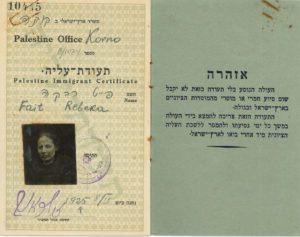 JUDAICA. Passeport, Kovno Kaunas] [(Lituanie) 8 novembre 1925 ; carnet à couverture cartonnée bleue avec étoile en couverture, 16 pages en partie imprimées ; en hébreu..Palestine Immigrant Certificate attribué à Rebeka Fait née en 1893....