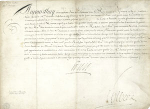 LOUIS XIV. P.S. (secrétaire), contresignée par Jean-Baptiste COLBERT (1619-1683), Saint-Germain en Laye 19 juin 1670 ; vélin oblong in-4..Sur la fonte des canons pour la marine. Nomination du sieur Jean La Tache comme maître fondeur de...