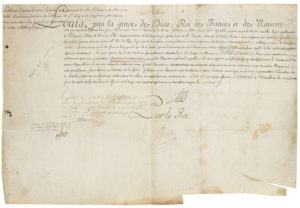 LOUIS XVI (1754-1793). P.S. (secrétaire), contresignée par le maréchal de Ségur, Versailles 9 février 1783 ; vélin oblong in-fol. (cachet de la coll. Colbert de Beaulieu au dos)..Lettres d’attache sur indult, qui permet à l’évêque de...