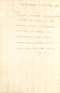 Michel Le Tellier, marquis de LOUVOIS (1641-1691) secrétaire d’État à la Guerre, réorganisateur de l’armée française. L.S., Versailles 20 mai 1689, au Commissaire Grezillemont ; demi-page in-fol. .Lettre concernant les farines des...