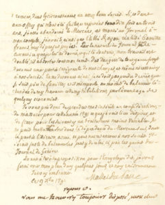 journal étant importantes, son bénéfice tombe cette année au-dessous de 15 000ll, inférieur à celui de 1790. « Vous avez, il est vrai perdu des souscriptions sur le Mercure ; mais vous en avez regagné une partie par le Jl de Genève »… S’il avait abandonné le Mercure et monté un journal à son compte, « j’aurais ainsi que l’abbé Royou, réalisé 60 mille francs, mes dépenses payées. Par la nature du Journal, par le caractère que je lui ai donné, et qui l’a soutenu, mon travail est doublé ; il absorbe tout mon tems »… Il demande donc de lui assurer un traitement convenable et moins variable »… À la suite, minute de la réponse de Panckoucke : il a eu des pertes sur les deux journaux ; il confirme les 18 000 livres promises, en prenant à sa charge les petits frais..On joint une carte de membre de la Société des Amis de la Constitution (sur petit carton 5 x 6,5 cm, vignette aquarellée en vert).