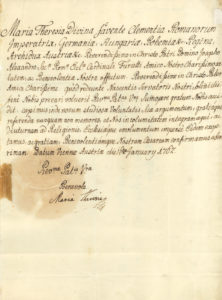 MARIE-THÉRÈSE. L.S., Vienne 16 janvier 1762, au cardinal Furietti ; ¾ page in-fol., adresse avec sceau aux armes sous papier ; en latin (petites déchir. marg. sans manque)..Elle le remercie de ses vœux à l’occasion de Noël, et lui adresse...