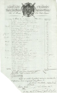 [NAPOLÉON Ier]. Facture signée de Gervais Chardin, Parfumeur de leurs Majestés, Impériales et Royales, Paris 10 janvier 1810 ; 1 page in‑fol. avec vignette et en-tête gravés (un coin manque en bas)..Facture de fournitures pour S.M....