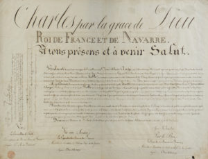 1822) et des lettres de noblesse délivrées par Charles x (30 juin 1830) à Josué Alexis AUGÉ (1787-1850), dit Augé de Fleury, notaire à Paris, et maire de Passy (1815-1830). On joint les armoiries aquarellées d’Augé.