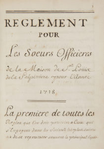 SALPÊTRIÈRE. Manuscrit, Reglement pour les Sœurs Officieres de la Maison de St Louis de la Salpêtriere pour l’année 1718 ; un volume petit in-4 de 201 pages, tranches rouges, reliure de l’époque veau brun (usagée, charnières...