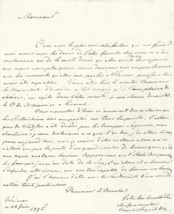 Charles Auguste de SAXE-WEIMAR. L.A.S., Weimar 22 juin 1796, au maréchal de Castries ; 1 page in‑4..Opérations militaires en Prusse. ... « Vous êtes bien le maître [...] d’accorder à tel émigré qu’il vous plaira de choisir, un azile...