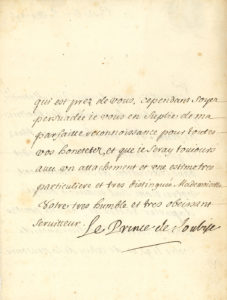 aux armes..« Permettez moy de vous dire Mademoisele, que je ne suis du nombre des heritiers de feue Mlle de Clisson qu’en idée, et que si j’avois le moindre credit dans lexecution de son testament, votre nom seul m’aurait obligé d’aporter toutes les facilites possibles pour accelerer la delivrance de votre legs, et de celuy de la personne qui est prez de vous »...