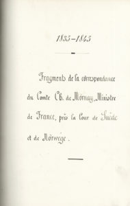 SUÈDE. Charles, comte de MORNAY (1803-1878) diplomate. Manuscrit, Fragments de la correspondance du Comte Ch. de Mornay, ministre de France, près la Cour de Suède et de Norwège, 1835-1845 ; in-fol. de 570 pages environ, reliure chagrin noir,...