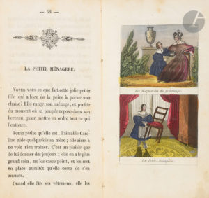 Blanchard, rue de Seine, 53. [Vers 1855]. In-12 (17,3 x 10,5 cm). 71, (1) [catalogue de l’éditeur] pp., 3 planches gravées et coloriées : demi-percaline beige à petits coins, plats de papier chagriné brun. (Cartonnage de l’époque).