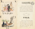 Le deuxième titre comprend douze pages de deux illustrations et une dernière page pour le Z de Zibeline, gravées et coloriées au pochoir. A pour Abricotier, Évêque, Fusil, Raquette [Jeu de volant], Xylographie, etc.