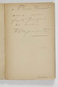 FUTURISME. MARINETTI (Filippo Tommaso).Les mots en liberté futuristes. Milano, Edizioni futuriste di « poésia », 1919. In-12, br. Édition originale. 4 planches dépliantes. Exemplaire enrichi d’un envoi a.s. portant le tampon Marinetti en 4e...