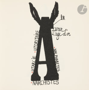 Vingt et un dessins originaux de lettres à l’encre noire assortis de quelques touches de rouge dans les occurrences manuscrites qui suivent les contours de la lettre ou dans des dessins juxtaposés. De A, Autarcie, Autoritaire, Anarchistes, etc. à U, Utopie, un conte pour enfants.