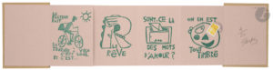 Livre d’artiste comprenant les lettres illustrées, en linogravure verte, du mot AMOUR.