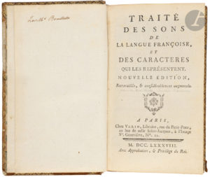 BOULLIETTE (Abbé). — Traité des sons de la langue françoise. — Et des caractères qui les représentent. Nouvelle édition, retravaillée, & considérablement augmentée. Chez Varin, libraire rue du Petit-Pont, au bas de celle Saint-Jacques,...