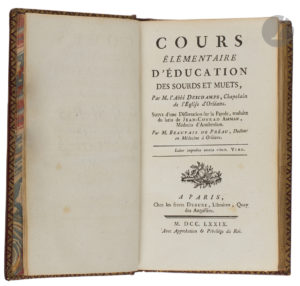 ♦ Précieuse unique édition, par l’Abbé Claude-François Deschamps (1745-1791), sur l’éducation des sourds et muets au XVIIIe siècle.