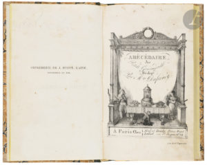 DUFRENOY (Madame Adélaïde-Gillette, née Billet). — Abécédaire des petits gourmands. — Cet ouvrage est orné de vingt-six gravures lithographiées d’après les dessins de MM. Devilly et Leloi, peintres à la manufacture royale de...