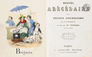 ♦ Très rare Abécédaire des petits gourmands en coloris d’époque et mis au goût du jour par Madame Wetzell.