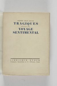 JOUVE Pierre Jean.Tragiques, suivis du Voyage sentimental. Paris, Stock, s.d. (1922). In-8, br. Édition originale sur papier d’édition.