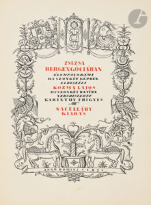 Unique édition d’un très rare abécédaire hongrois illustré de vingt-deux planches en couleurs par l’architecte et graphiste Kozma Lajos (1884-1948). Elève d’Henri Matisse (1909-1910).