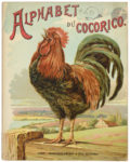 • Alphabet du cocorico. Bernardin-Béchet & fils éditeurs. Paris. [Vers 1890]. In-4 (27,8 x 22 cm). (14) pp. : couvertures de carton fort, chromolithographie sur la première, un grand coq sur une barrière, paysage au loin.