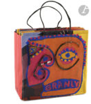 JACOBI (Michéa). — ABC Branly. — Achevé le 19.XI.2018 à Marseille. Leporello (20,3 x 20 cm, replié) de (14) volets avec peinture acrylique de couleurs et collages, recto-verso, renfermé dans un sac du Musée du Quai Branly-Jacques Chirac...