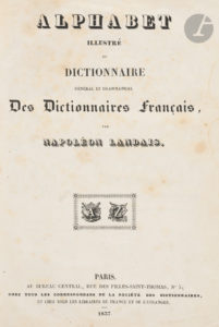 LANDAIS (Napoléon). — Alphabet illustré du dictionnaire général et grammatical des dictionnaires français. — Au Bureau central, rue des Filles-Saint-Thomas, N° 5. Paris. Chez tous les correspondans de la société des dictionnaires, et chez...